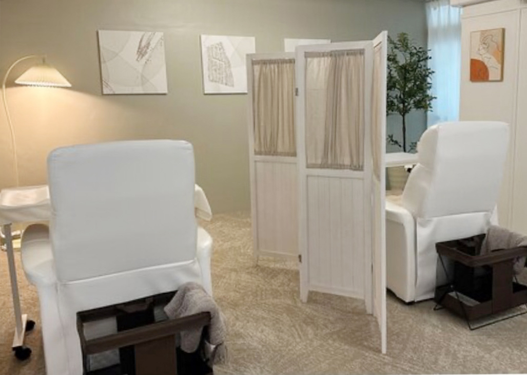 ご友人やご家族と一緒にご利用の場合は、パーテーションを外して並んで施術を受けることも可能です。