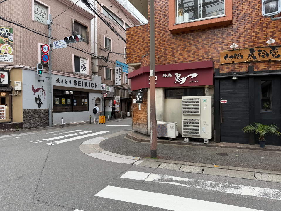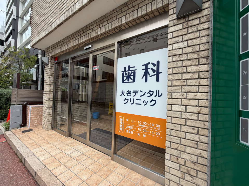 右手に大名デンタルクリニックのビルが見えてきます。