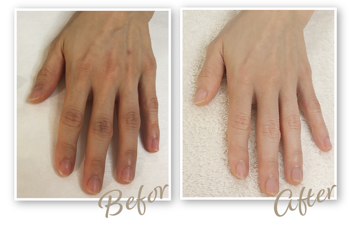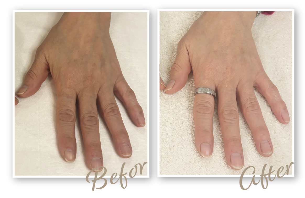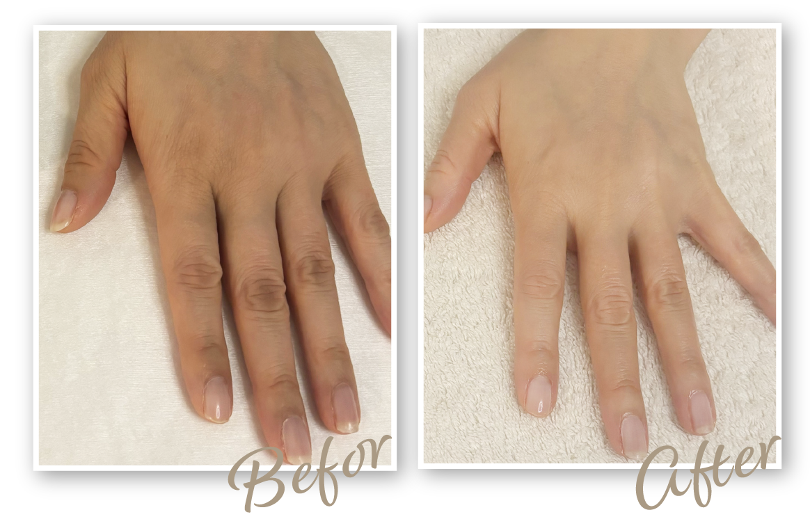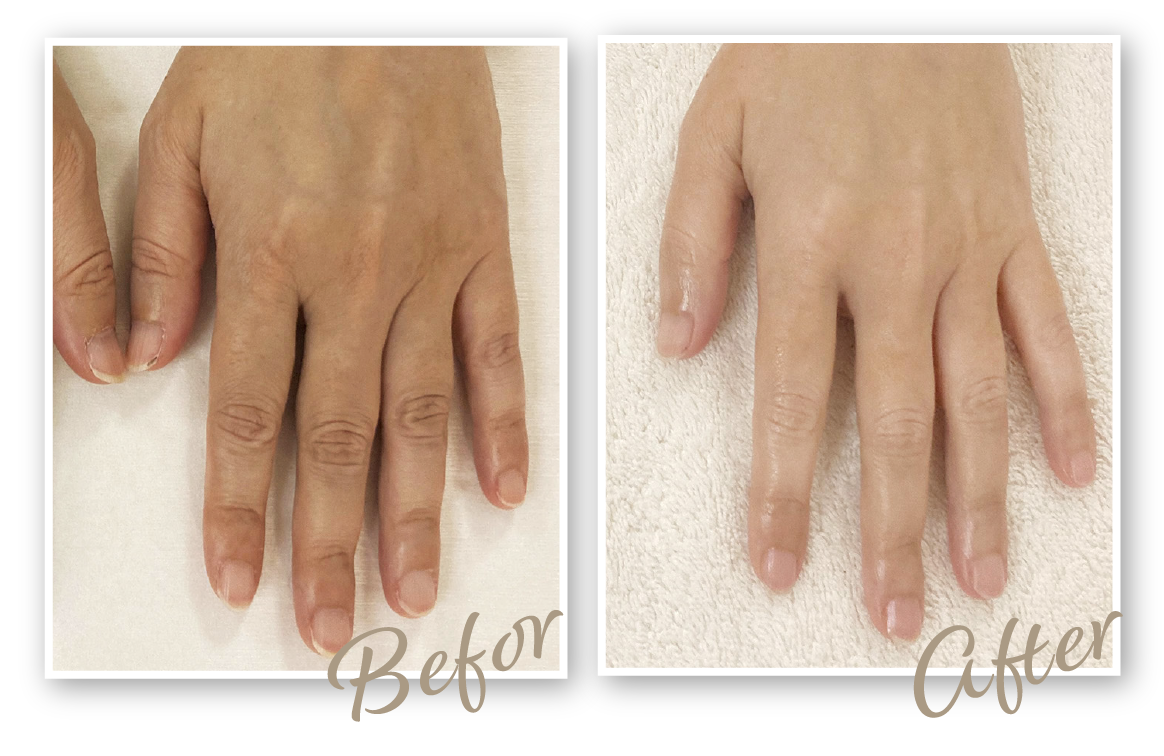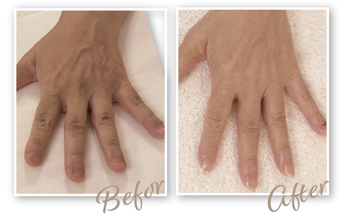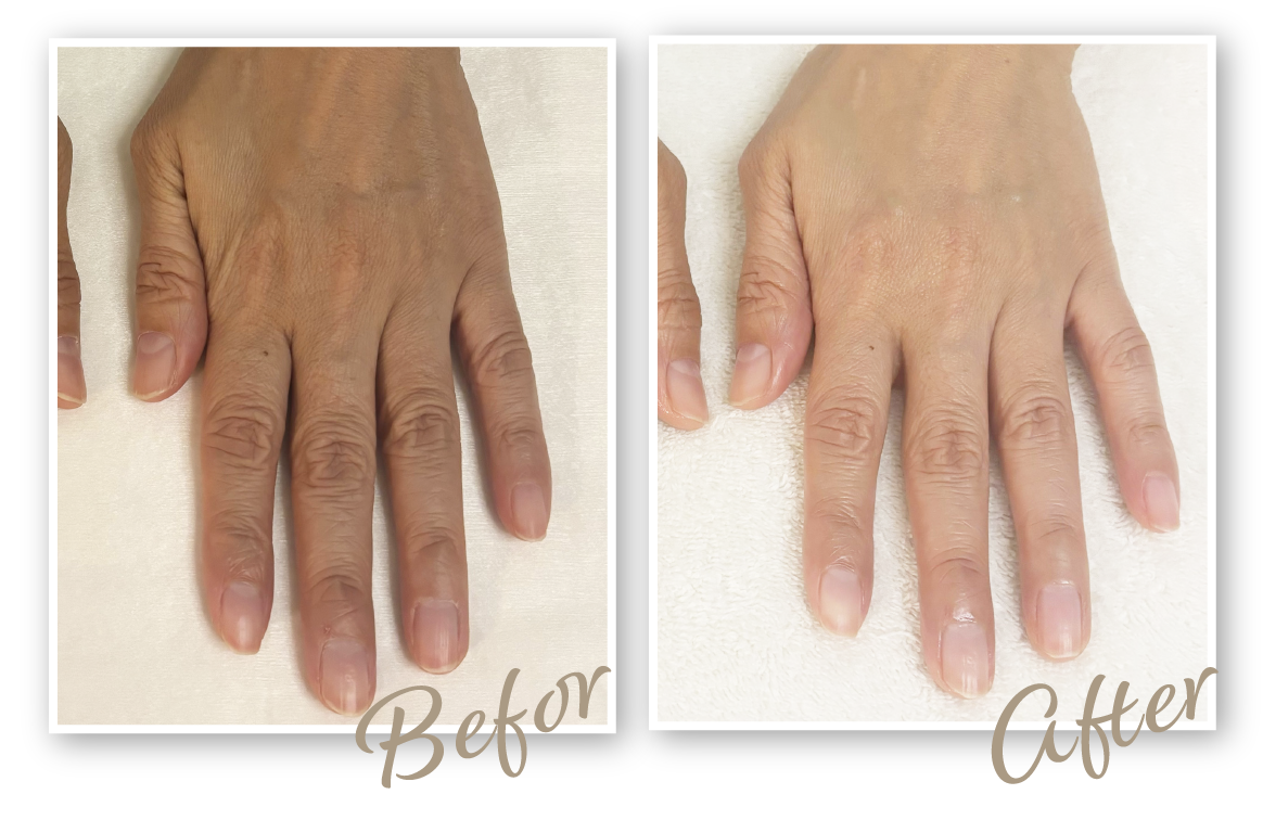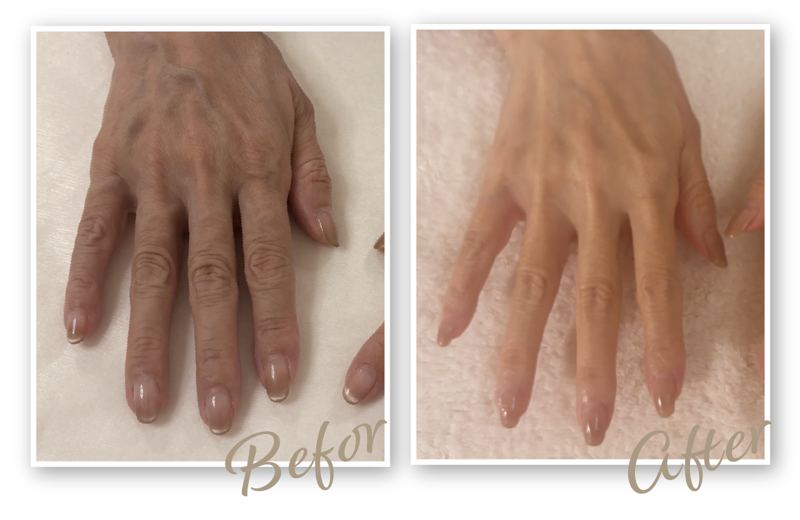 年齢とともに手のハリがなくなり、シワや爪の変色も気になっていました。