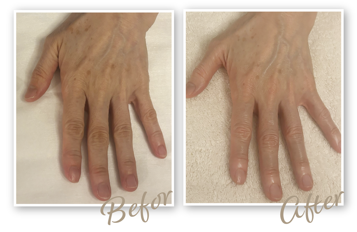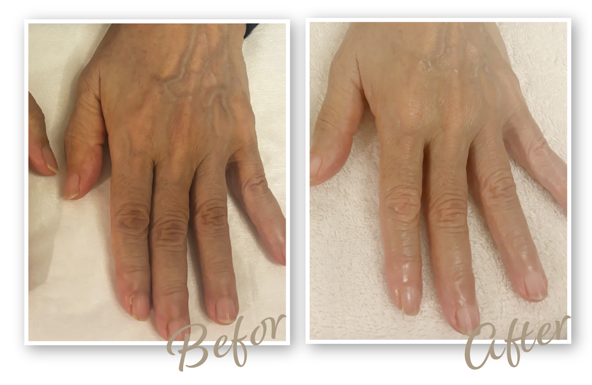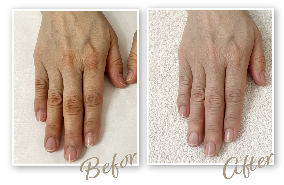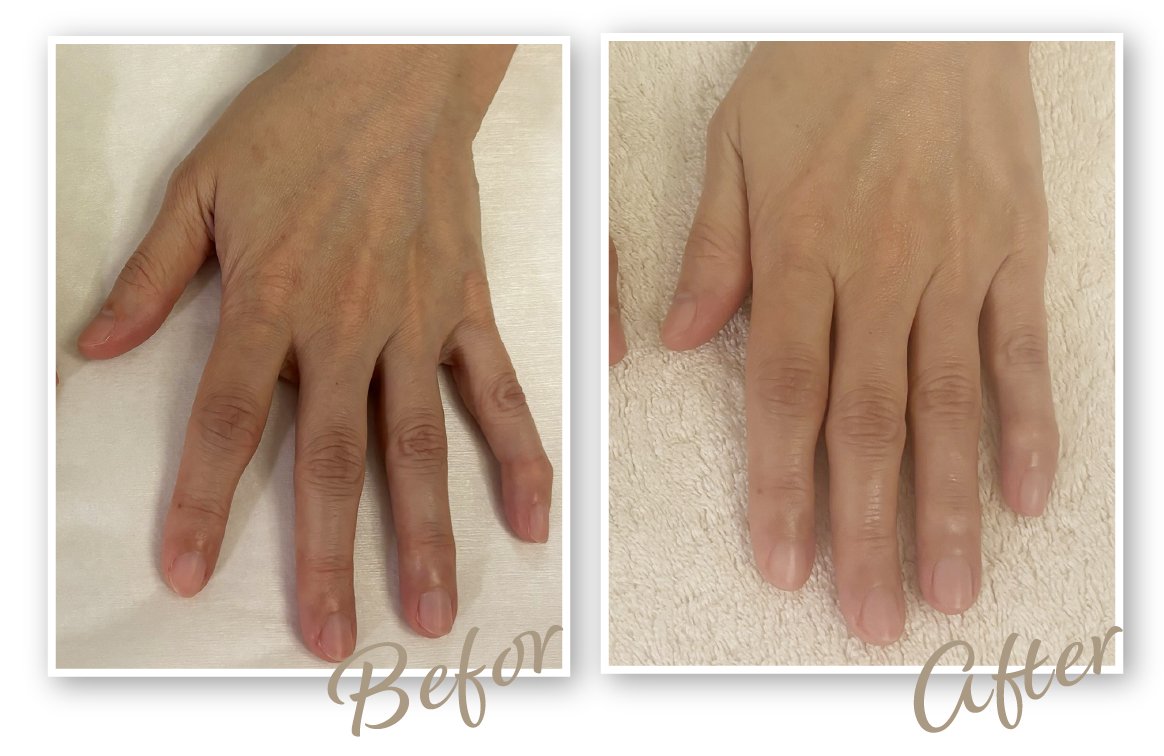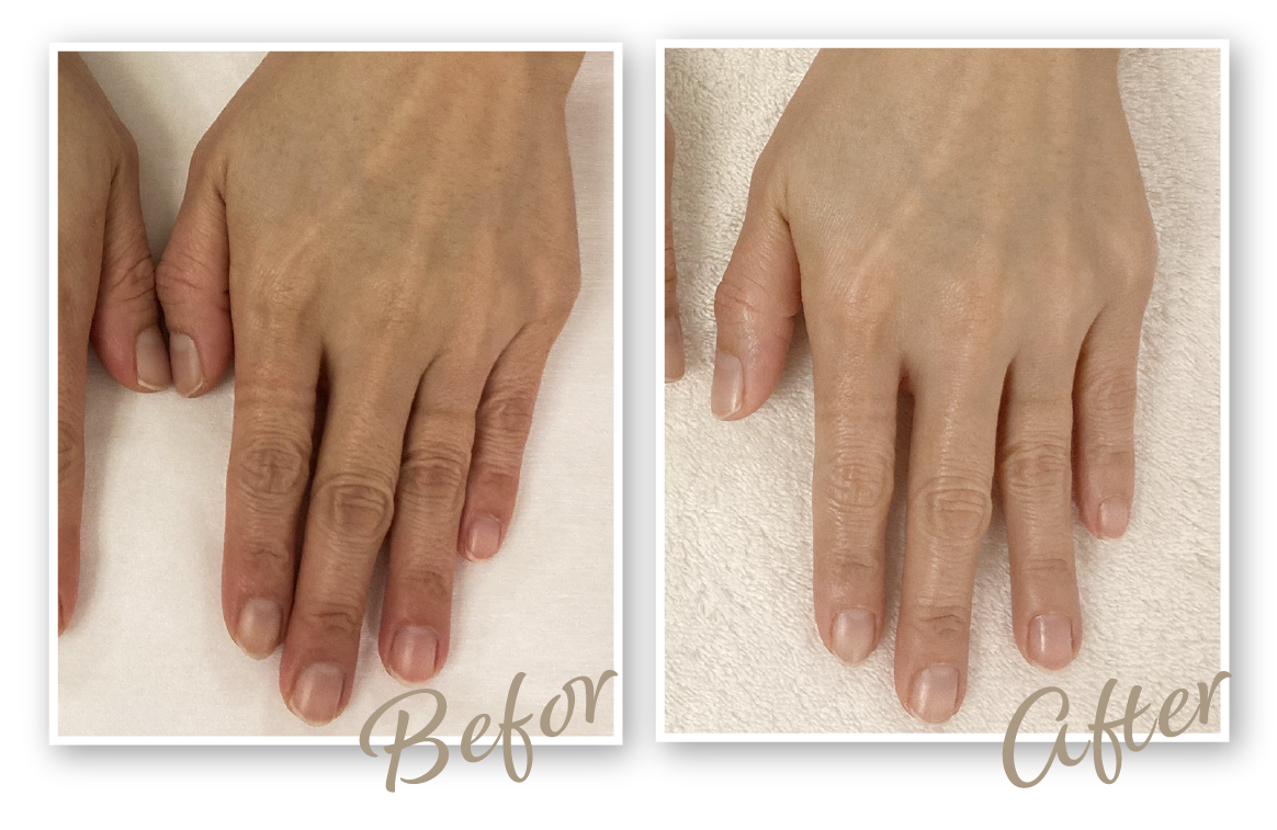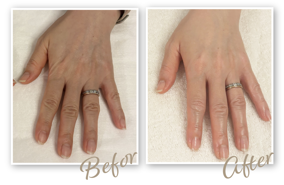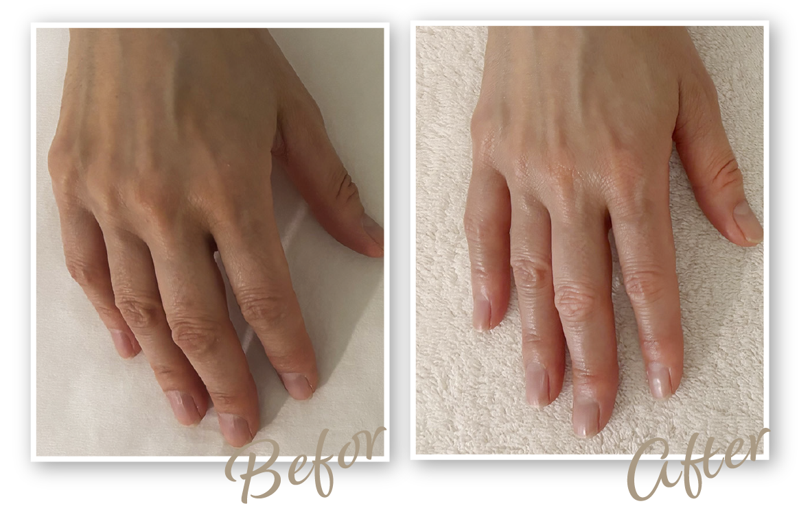 ハリが戻ってふっくらしてきたことで、骨や血管が気にならなくなり、全体的に若々しい印象に。今は自分の手を見るのが楽しみです。