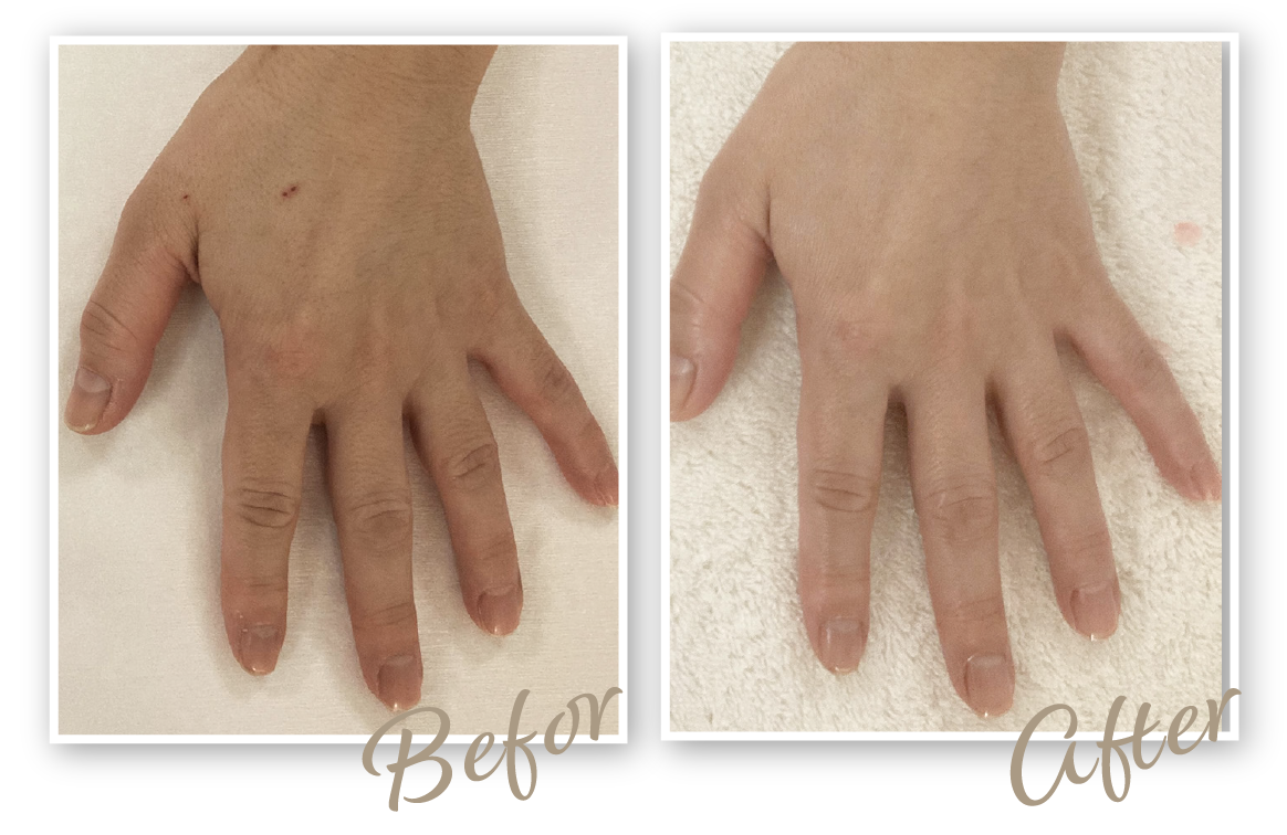 施術を重ねるうちに手が明るく見えるようになり、血管も前ほど気にならなくなりました。