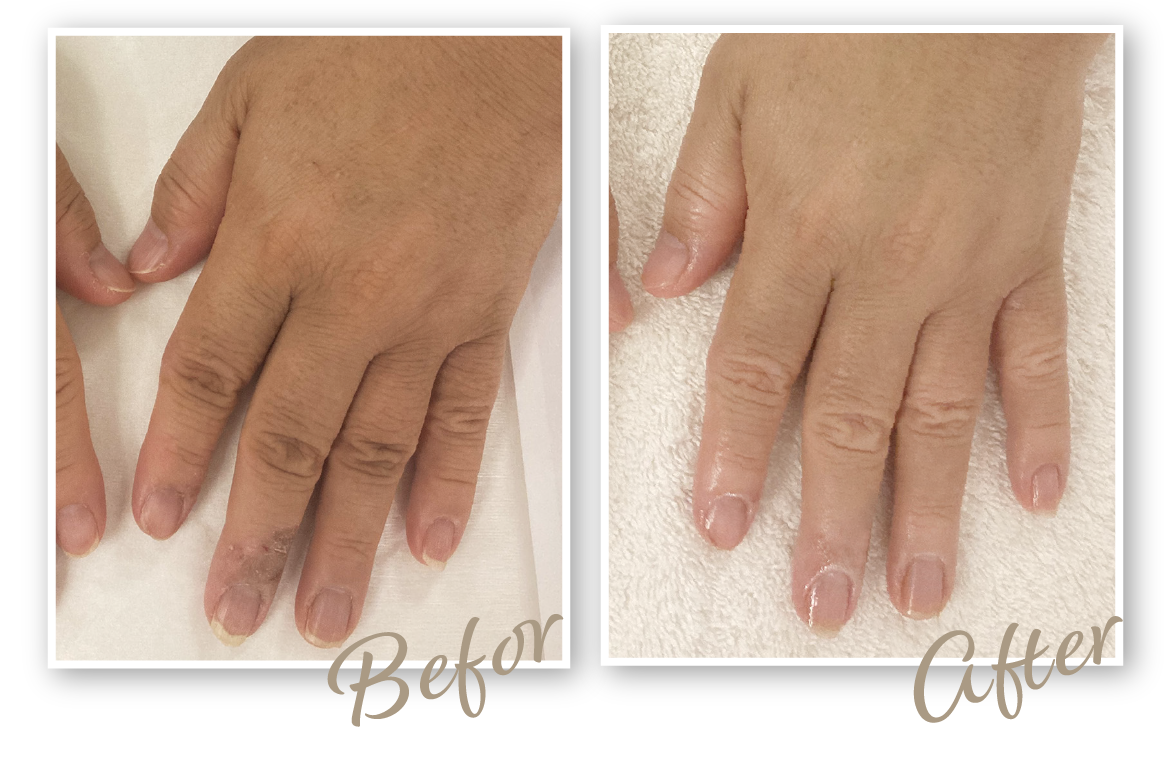 施術を受けてから手がなめらかに整い、指先まで明るい印象に。
