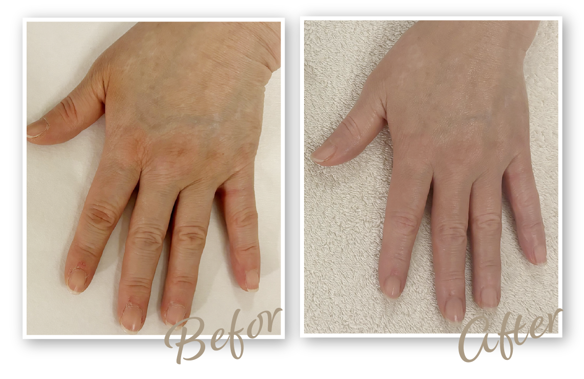 施術後はしっとりもちもちの質感になり、白くきれいな手に。