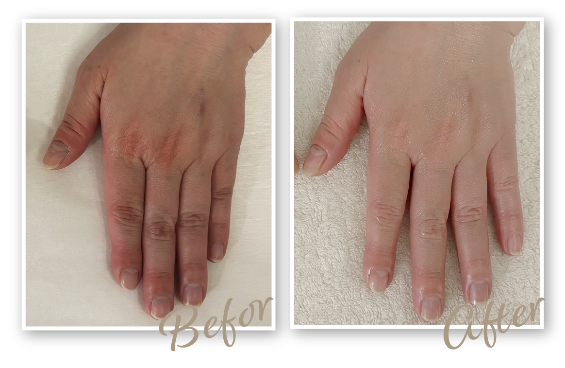 初回の施術でセルフケアとの違いを実感し、手肌の変化に驚きました。